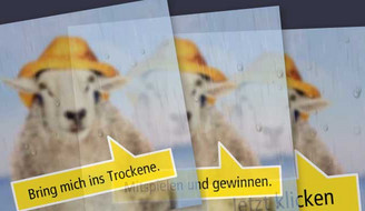 This first round of sheep banners was created in mid 2006 and showed sheep running around in different places, mostly suffering heavy rain. No animals harmed during the shooting, though!