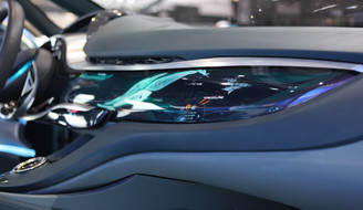 A sculpted, superwide multitouch multiscreen system featuring a very nonrectangular interaction design for the concept car HED-7 ‘iFlow’ by Hyundai’s European Design Center.