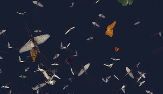 As athmospheric and playful introduction a series of rotundas make up the first part of the exhibition with an installation in each of them. 20 different local species were modeled as moveable 3D figures in a lifelike way to be animated, to some extend in realtime.